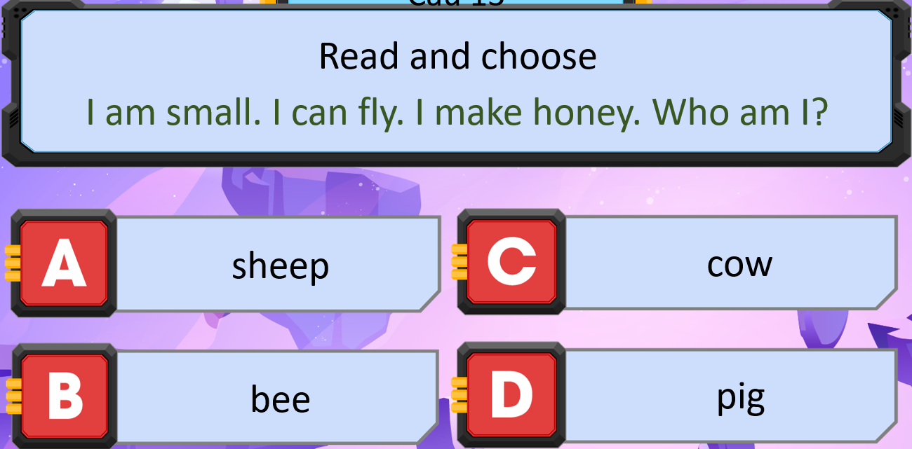 Giải thích: I am small. I can fly. I make honey. Who am I?: Tôi nhỏ. Tôi có thể bay. Tôi tạo ra mật ong. Tôi là ai?