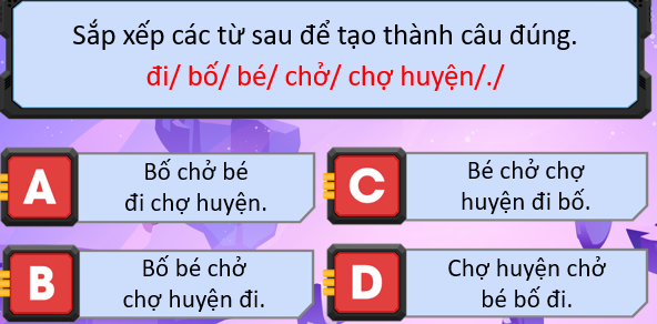 Đáp án: A. Bố chở bé đi chợ huyện.