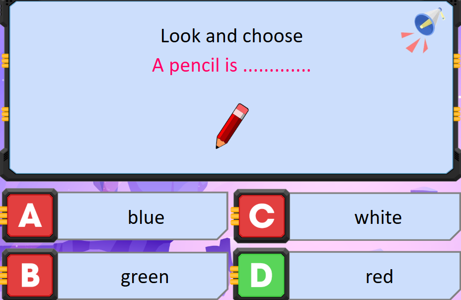 Giải thích: A pencil is red.: Cái bút chì màu đỏ.