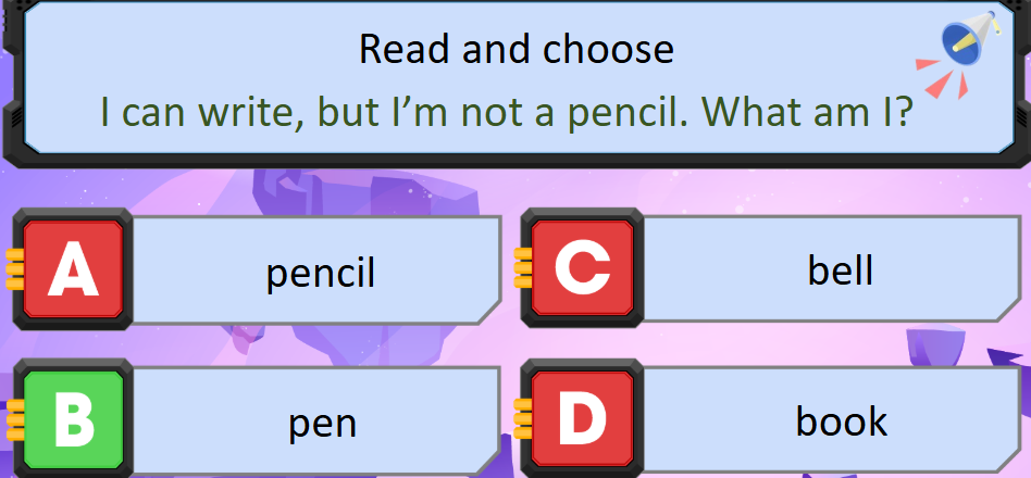Giải thích: I can write, but I’m not a pencil. What am I?: Tớ có thể viết, nhưng tớ không phải bút chỉ. Tớ là ai?
