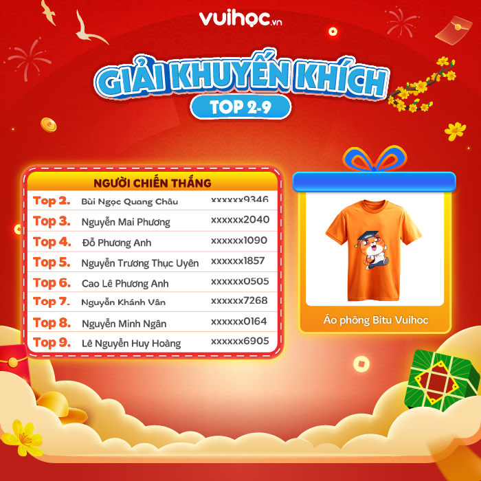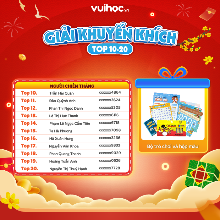 Vuihoc sẽ chủ động liên hệ với các gia đình đạt giải để xác nhận thông tin và tiến hành gửi quà trong thời gian sớm nhất.