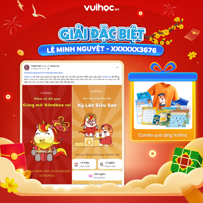 Vuihoc xin chúc mừng các học sinh và gia đình đã đạt giải trong minigame VUIHOC LOOKBACK 2025.