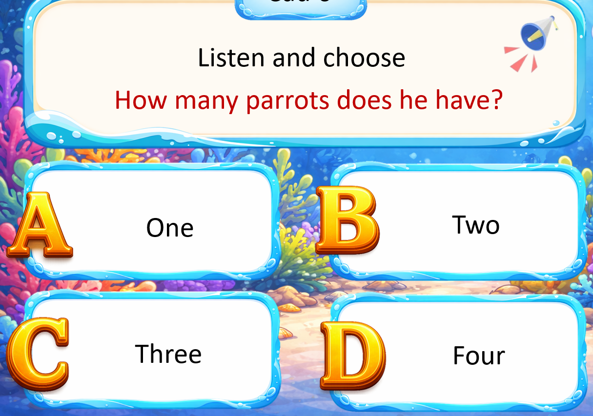 Giải thích: How many parrots does he have?: Anh ấy có bao nhiêu con vẹt?